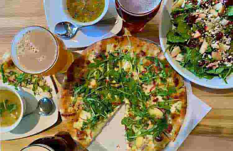 Offers house-brewed beers and seltzers alongside artisanal pizzas and a lush beer garden atmosphere. See more →