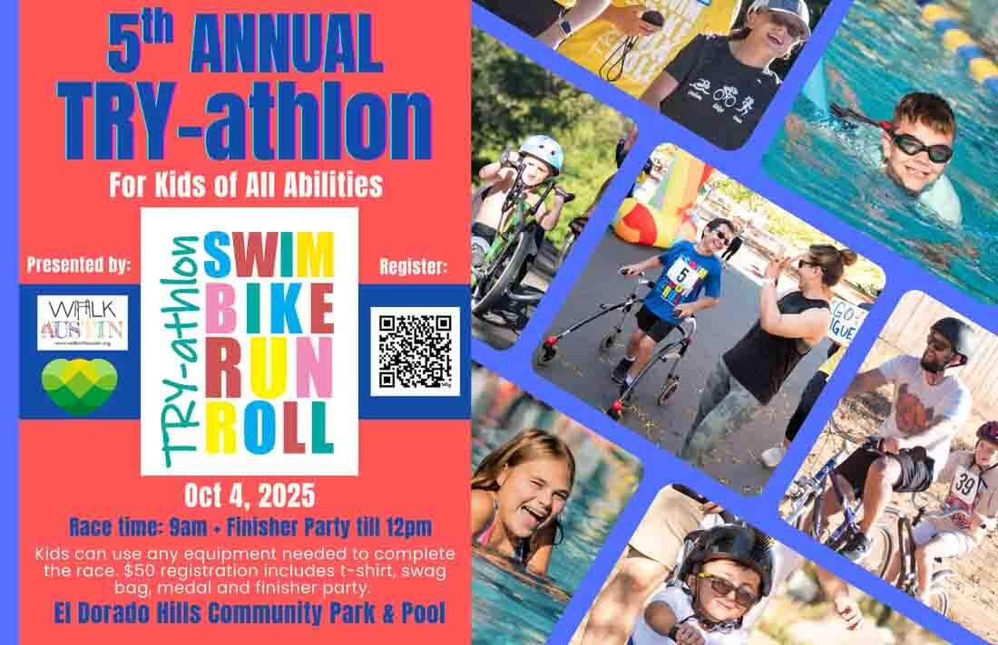 This October 4, the El Dorado Hills Community Park & Pool will come alive with cheers, smiles, and pure joy as kids of all abilities take on the 5th Annual TRY-athlon. It’s not just a race—it's a celebration of effort, courage, and community support, where every finisher gets a medal and everyone’s cheering is part of the finish line.